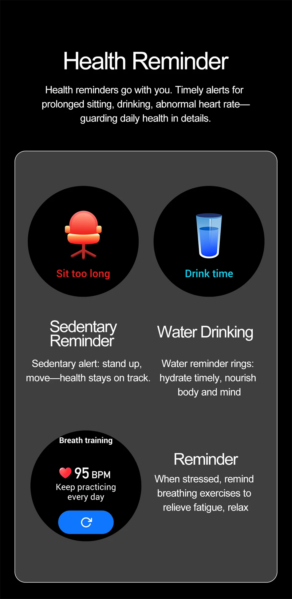 Watch features 13: Sedentary Reminder Drink Water Reminder Alarm Clock